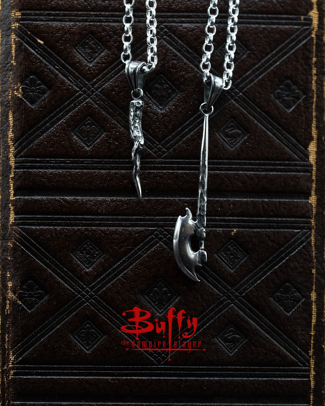 Inspired by 'Mr Pointy' - the stake left behind by Kendra and used by Buffy throughout the Buffy The Vampire TV series. The stake design has been hand-carved in wax and cast in sterling-silver.
